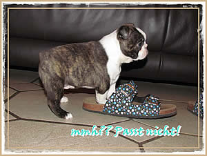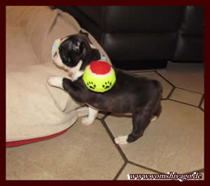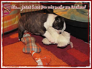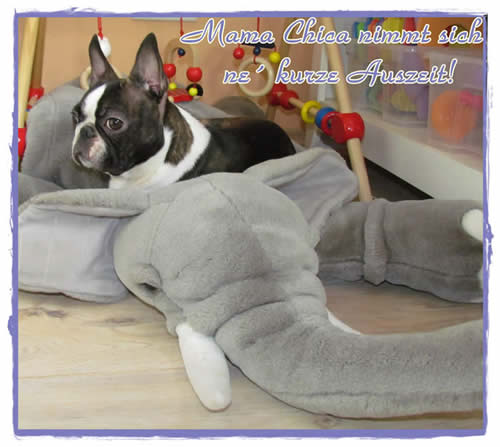 Auch das Spielzeug hat er entdeckt und Mama Chica muss auch mal ihre Ohren oder Leftzen hin halten in die Arnie mit genuß rein beißt!