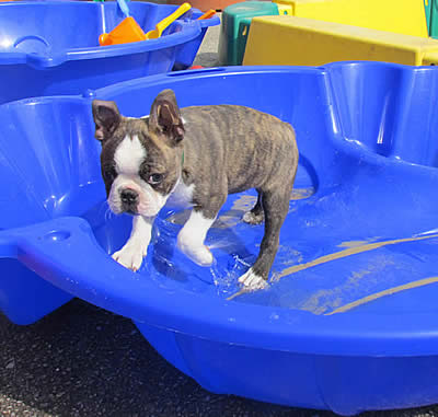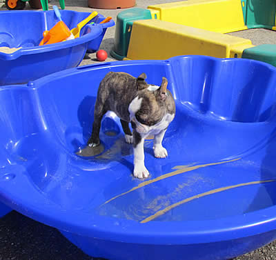 Pia und Arnie plantschen gerne im Wasser!