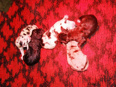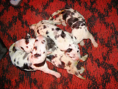 2 gefleckte Rüde 2 gefleckte Hündinnen 1 schwarzer Rüde 4 schwarze Hündinnen 1 grau Hündin